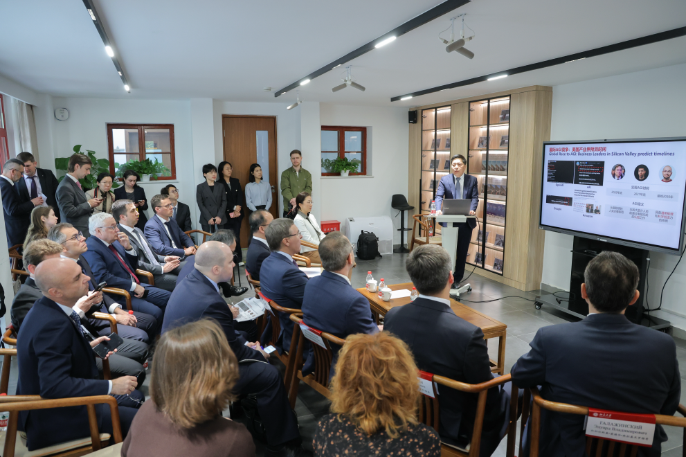 在人工智能及通用人工智能发展方面的前沿布局与最新研究成果。他围绕通用人工智能的理论框架、核心技术路径与全球发展趋势,分享了北大智能学科在有组织科研的格局下实现通用人工智能落地的探索实践,介绍了当前团队在通用智能体、通用人工智能安全治理、多模态认知推理等方向取得的最新进展,并就中俄在人工智能领域开展联合研究、人才培养等合作方向做出展望。报告结束后,双方围绕通用人工智能的人才培养、技术发展与应用前景展开了热烈交流,代表团成员对北大在通用人工智能领域的研究成果给予高度评价,期待未来能推动俄罗斯科研机构与女王调教